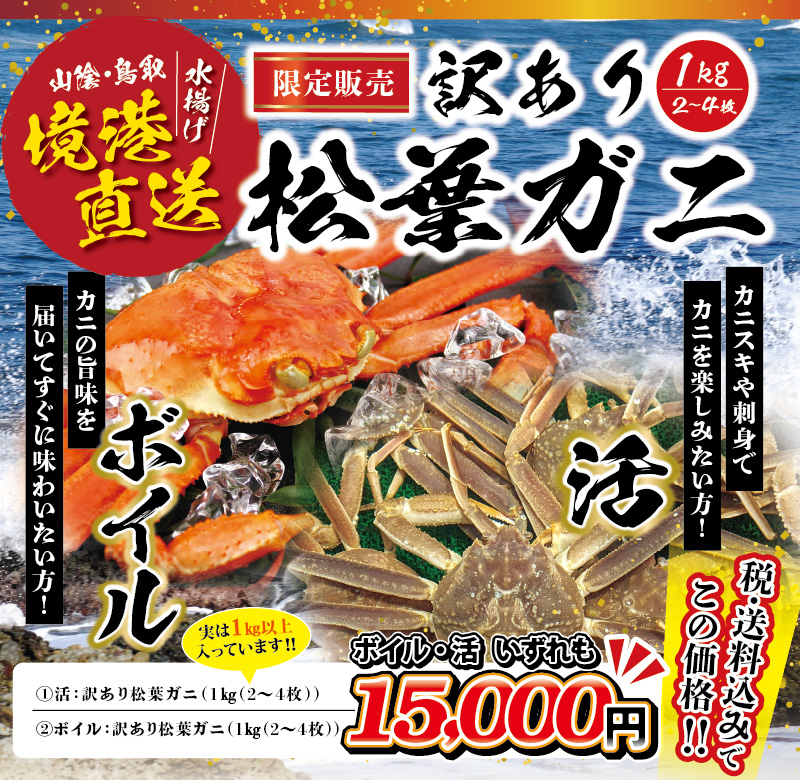 タグ付きの条件を満たさなかったけれど、美味しく食べられるカニが販売されている商品です。